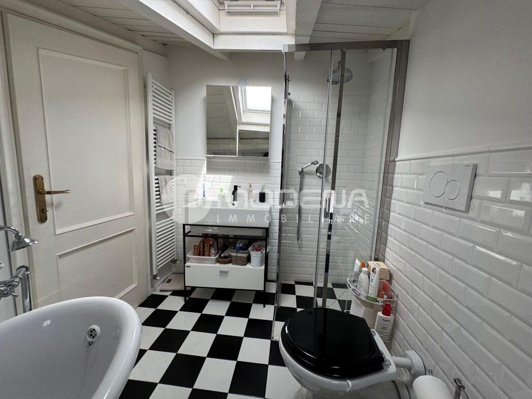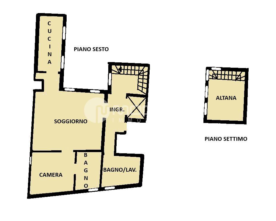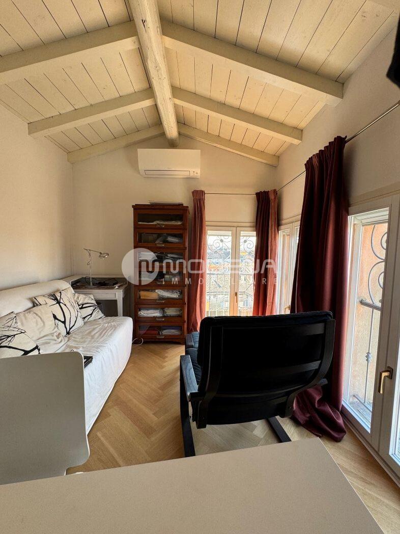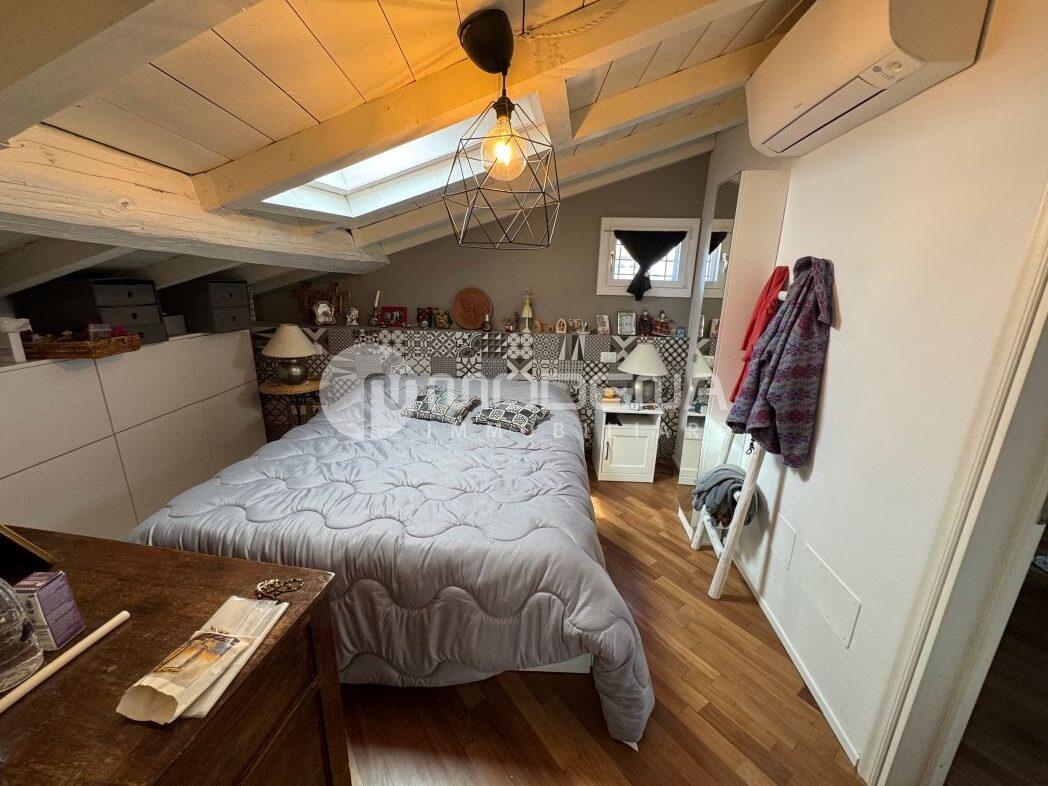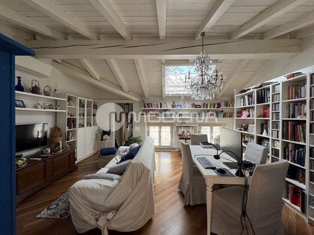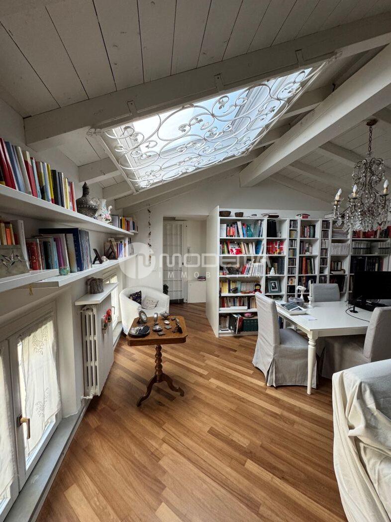 Vendesi affascinante appartamento con altana al sesto e settimo piano, servito da ascensore che sbarca in casa. L’immobile è stato completamente ristrutturato ed è composto da ingresso, sala, cucina abitabile, bagno/lavanderia, camera da letto matrimoniale con bagno padronale, scala interna, altana panoramica ad uso cameretta/studio. Come accessori ha un garage grande. Pavimenti in legno e ceramica, tetto in legno sbiancato, doppi vetri, riscaldamento autonomo, aria condizionata. A.p.e. in corso di definizione.