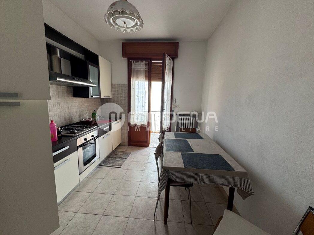 In palazzina a faccia vista degli anni 70 per complessive quattro unità immobiliari, vendesi appartamento al piano secondo e ultimo senza ascensore composto da: ingresso, cucina abitabile, sala con balcone, disimpegno, due camere da letto matrimoniali, altro balcone e bagno con doccia. Come accessori ha un garage, due cantine e una lavanderia al piano terra, due solai e un bagno al piano terzo. Pavimenti in marmo, legno e ceramica. A.p.e. in corso di definizione.