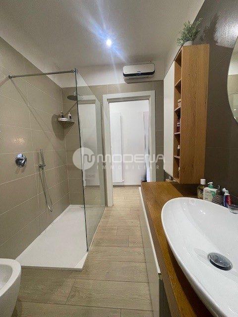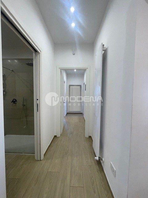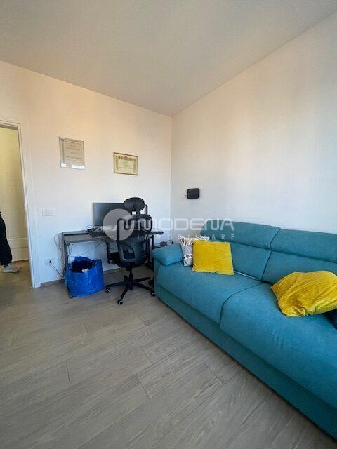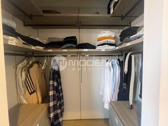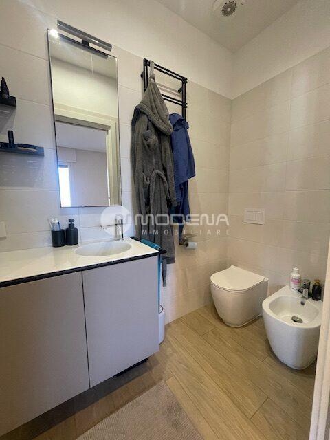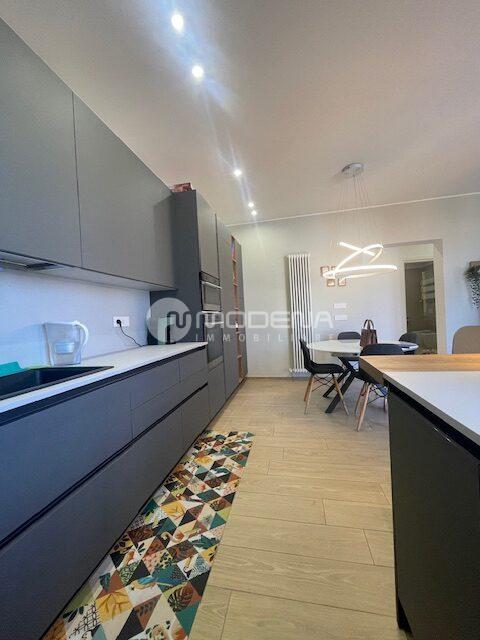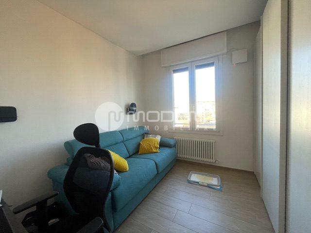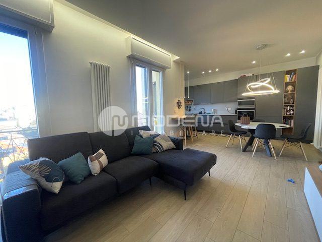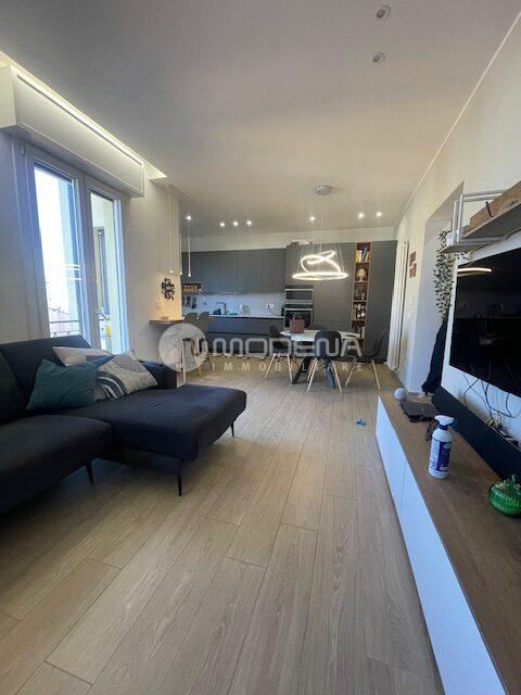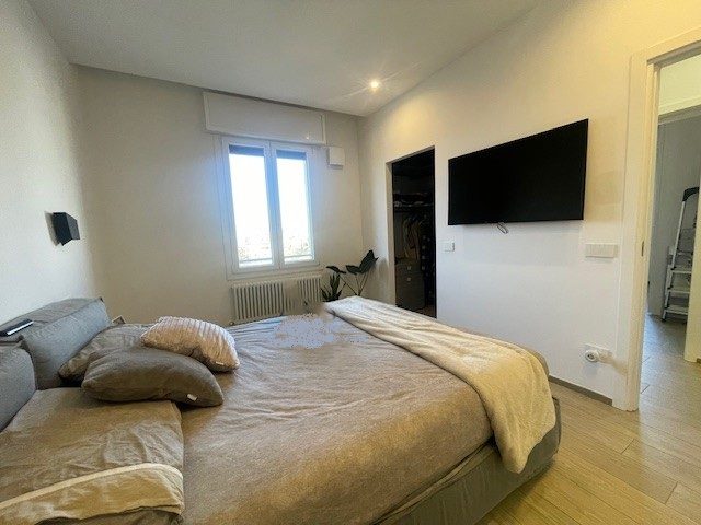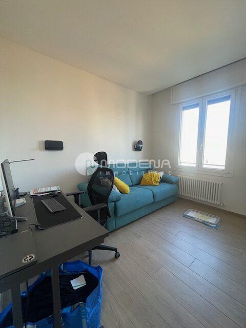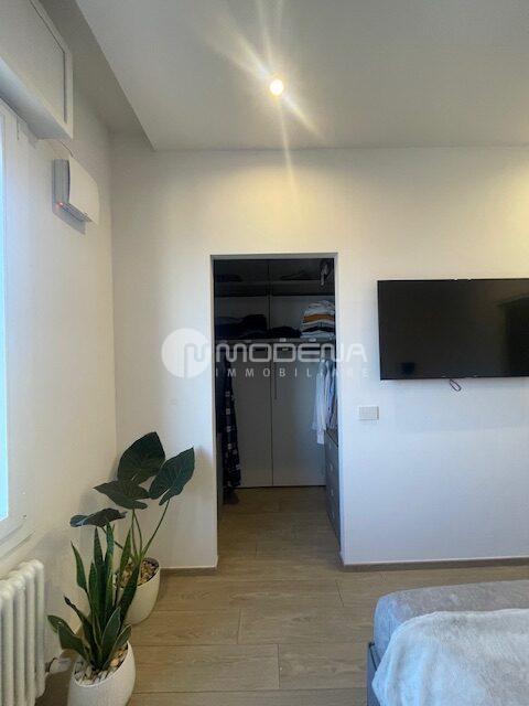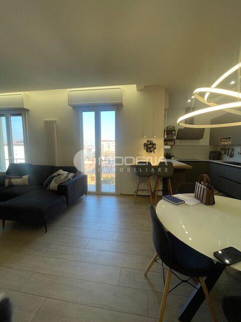 Proponiamo immobile luminoso e completamente ristrutturato posto al quinto piano, servito da ascensore. L’immobile ha un’ottima distribuzione interna: ingresso su corridoio, ampia zona giorno con openspace sala-cucina (cucina su misura moderna e funzionale, sala con accesso sul balcone), bagno moderno con doccia e finestra, studio. Dal disimpegno notte si accede alle due camere, una delle quali con bagno e cabina armadio. Completa la proprietà un garage per utilitaria al piano terra di 14 mq e parcheggio nel cortile interno. L’immobile è dotato di infissi in pvc con triplo vetro e tapparelle elettriche, tre split di aria condizionata, domotica, porta blindata. Arredato. Riscaldamento autonomo, basse spese condominiali. Classe energetica E (EPtot= 165,94).