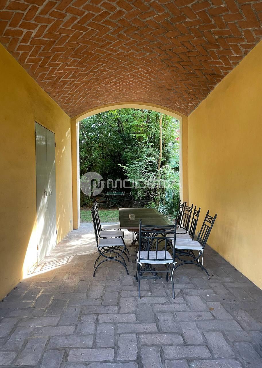In suggestivo borgo immerso nel verde disponiamo di villa centrale di generose dimensioni. L’immobile garantisce una totale privacy e si sviluppa al piano terra con un importante porticato che si affaccia sul giardino bifrontale, l’ingresso ed una ampia sala conviviale ad uso taverna dotata di cucina e bagno. Al piano primo troviamo un grande salone, una cucina abitabile, una camera da letto con stanza armadi e bagno oltre ad un’altra camera matrimoniale con bagno. Al piano secondo e ultimo troviamo un’altra grande sala, altri tre letti, un bagno ed una grande lavanderia. Tutti gli ambienti del piano secondo sono mansardati con generose altezze. Completano la proprietà due posti auto privati e due autorimesse. L’immobile si presta anche come comoda soluzione bifamigliare. Classe energetica F (EPtot=177,33). INFORMAZIONI C/O NS. UFFICIO.